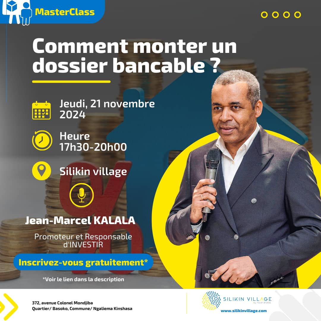 L’accès au crédit bancaire est un véritable casse-tête en République Démocratique du Congo pour les jeunes entrepreneurs qui sont dans la phase embryonnaire. Cette situation empêche plusieurs d’entre eux à se développer. Dans le souci de les aider à monter des dossiers solides de demande de crédit, le promoteur d’Investir, M. Jean Marcel Kalala, a animé le jeudi 21 juillet 2024 à Silikin Village, une Masterclass axée sur le thème « comment monter un dossier bancable ? ».